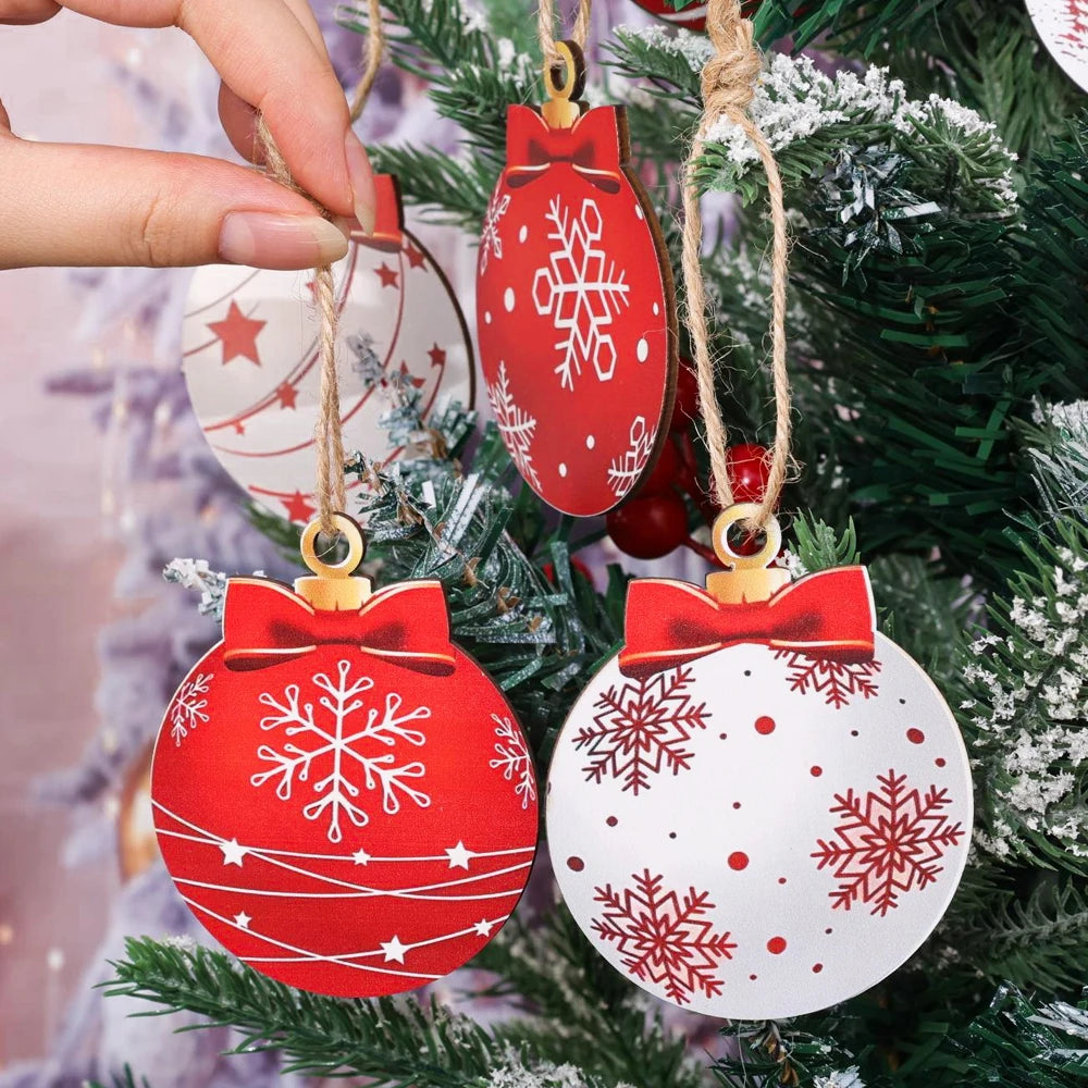 Festive Wooden Christmas Ornaments – 36/12PC Set